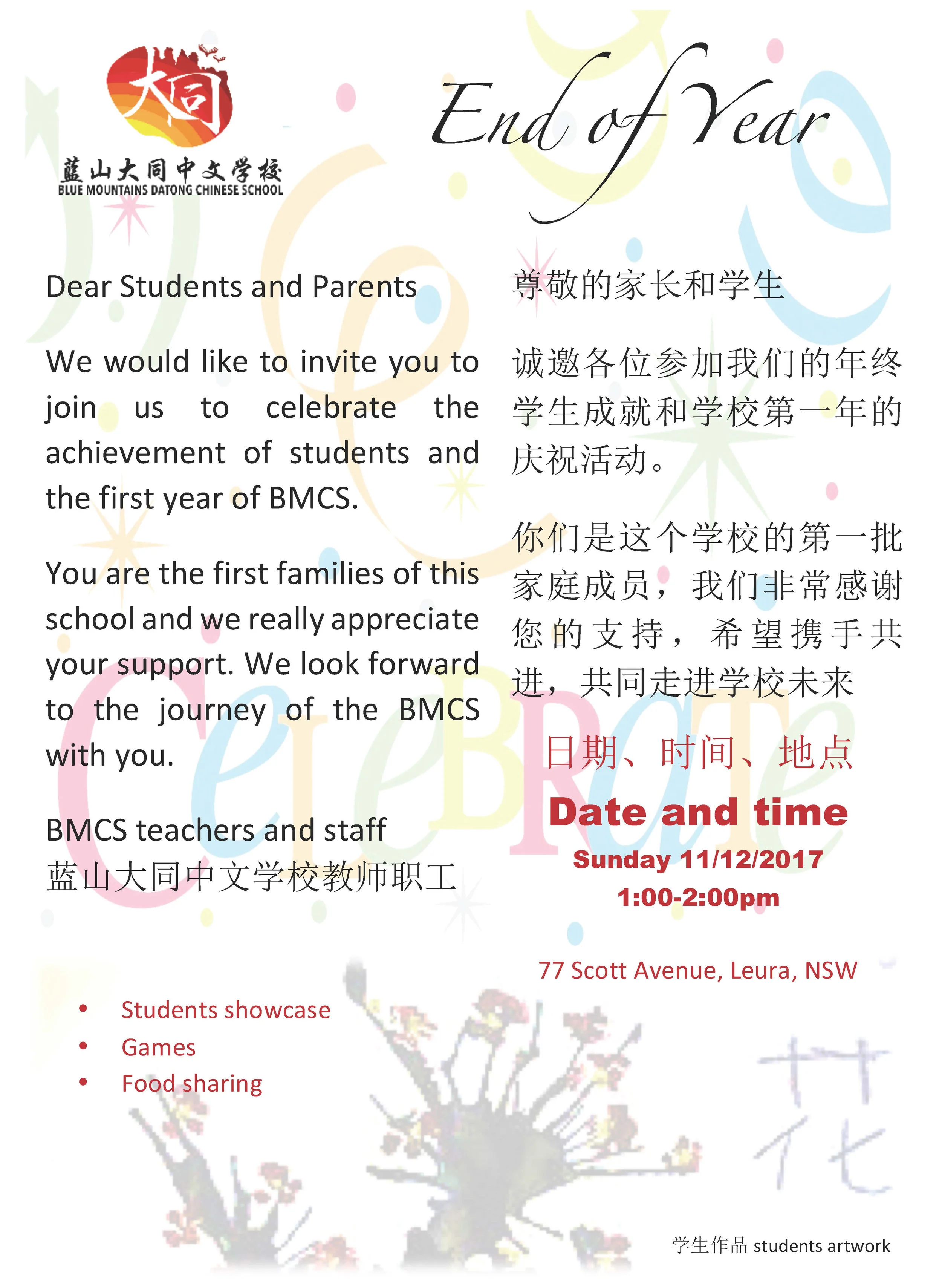 We would like to invite you to join us to celebrate the achievement of students and the first year of BMCS.